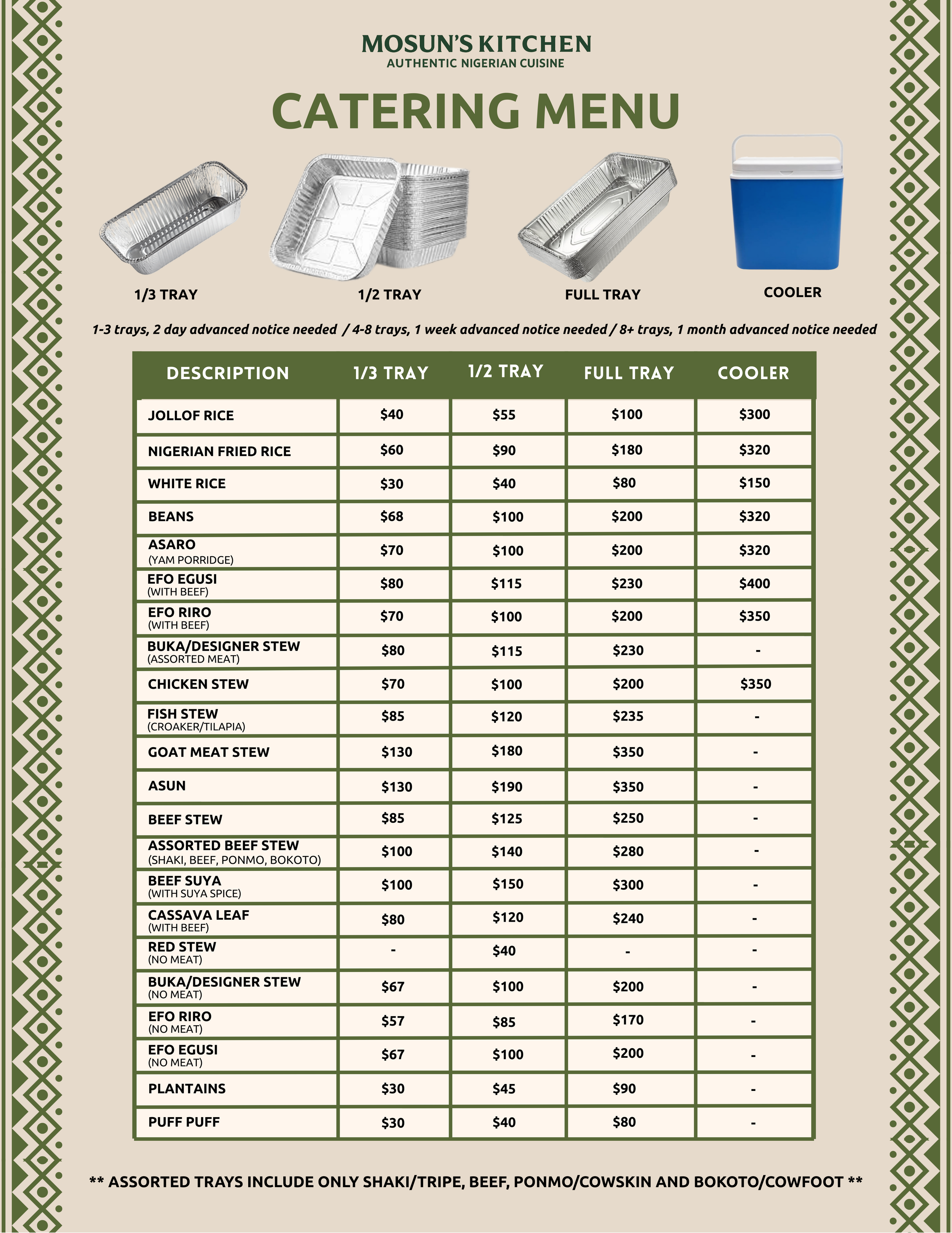 Mosun’s Kitchen delivers authentic Nigerian cuisine that leaves you or your guests talking long after the last bite. Choose from our curated catering menu or work with us to customize selections that suit you!